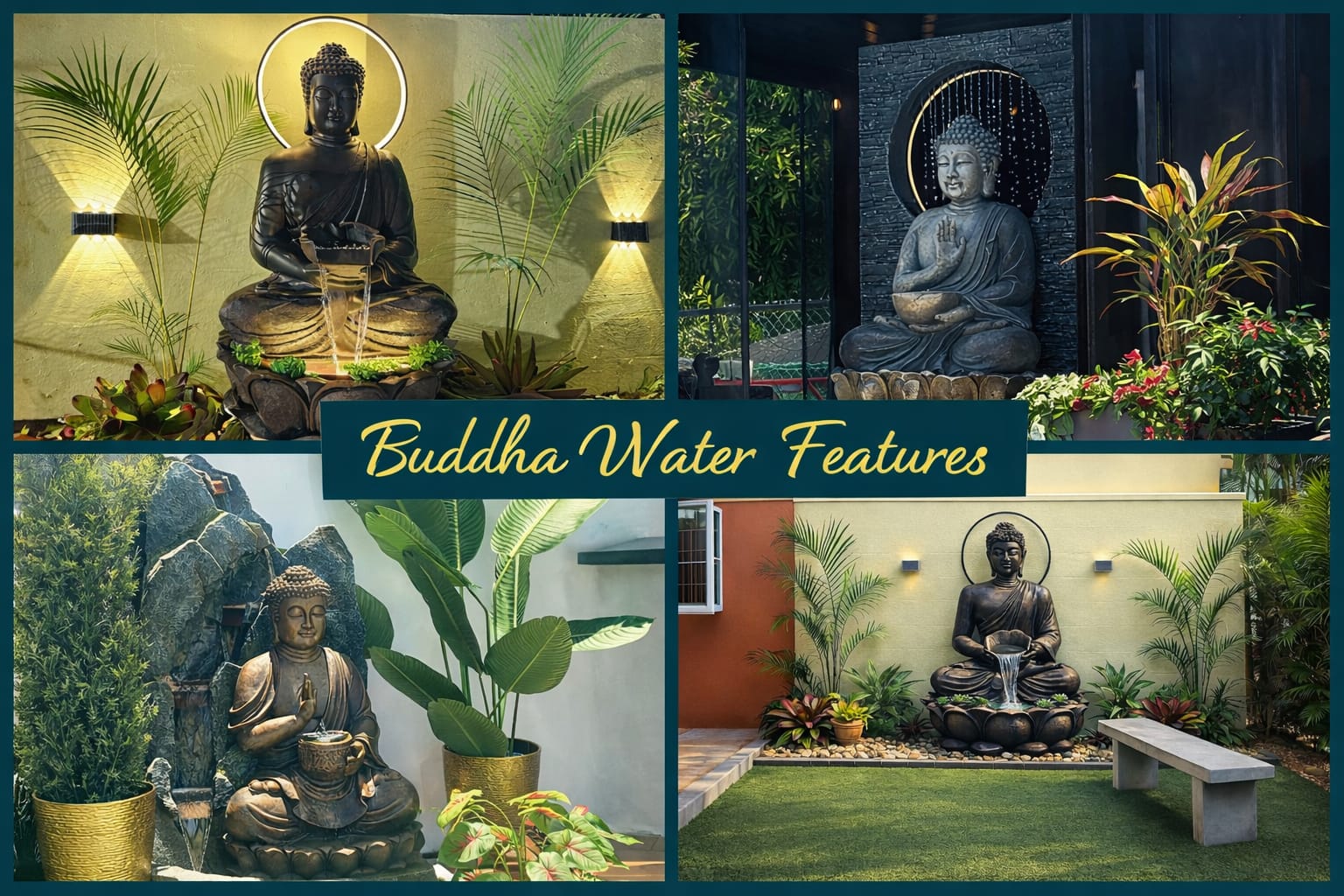 - Our 4.5-ft tall Buddha water features add instant serenity and elegance to any space.