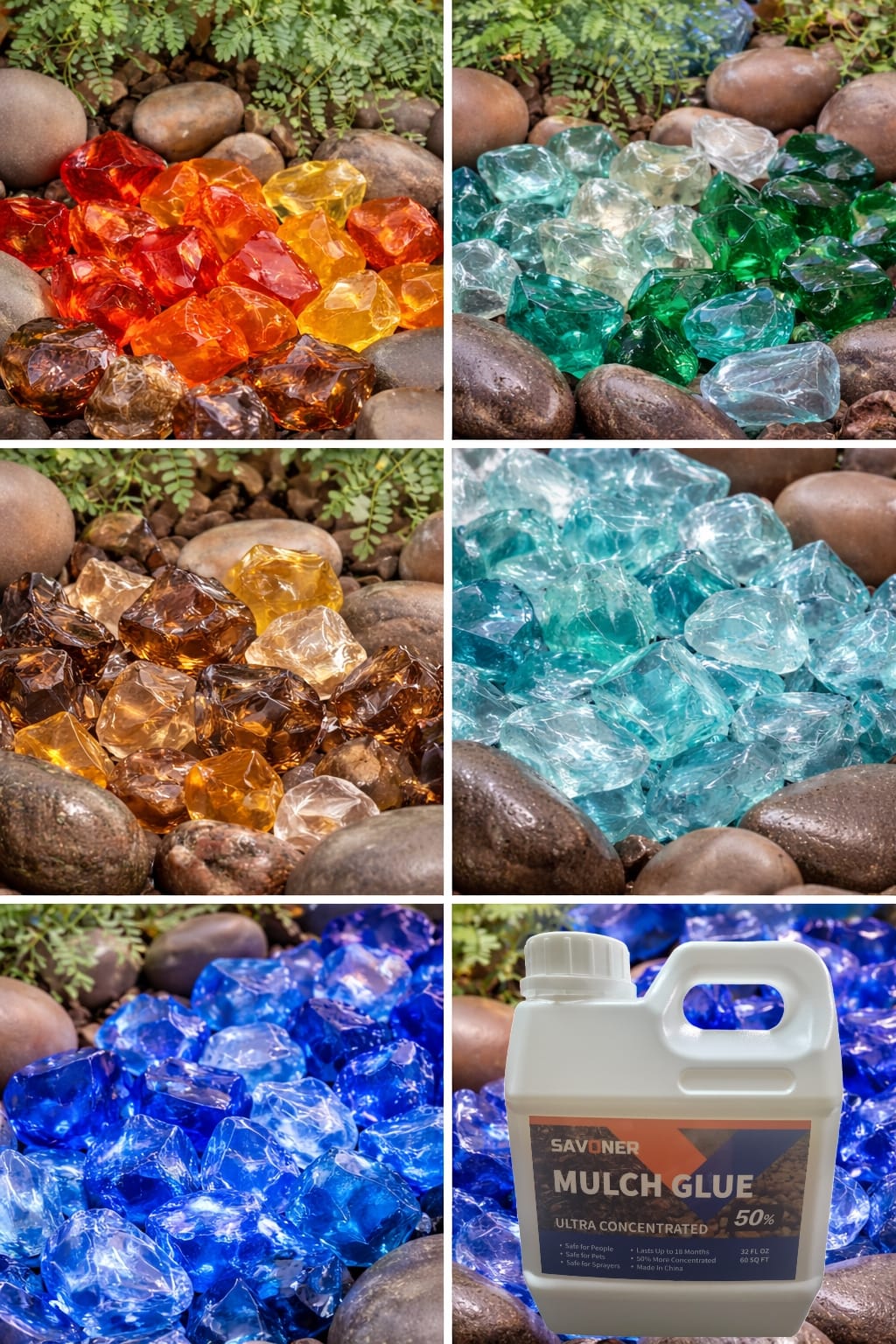 - For a secure, low-maintenance finish, we also offer mulch glue to keep your glass mulch beautifully in place, even in high-traffic or windy areas.