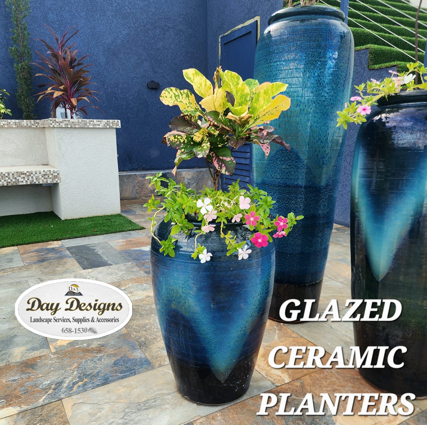 We also carry imported Mediterranean-inspired tall glazed ceramic planters, prized for their refined finish, vibrant colors, and structural strength—ideal for statement plants, entryways, patios, and commercial spaces. Many of our planters are equally suited for water features, creating a seamless blend of greenery and calming water elements.