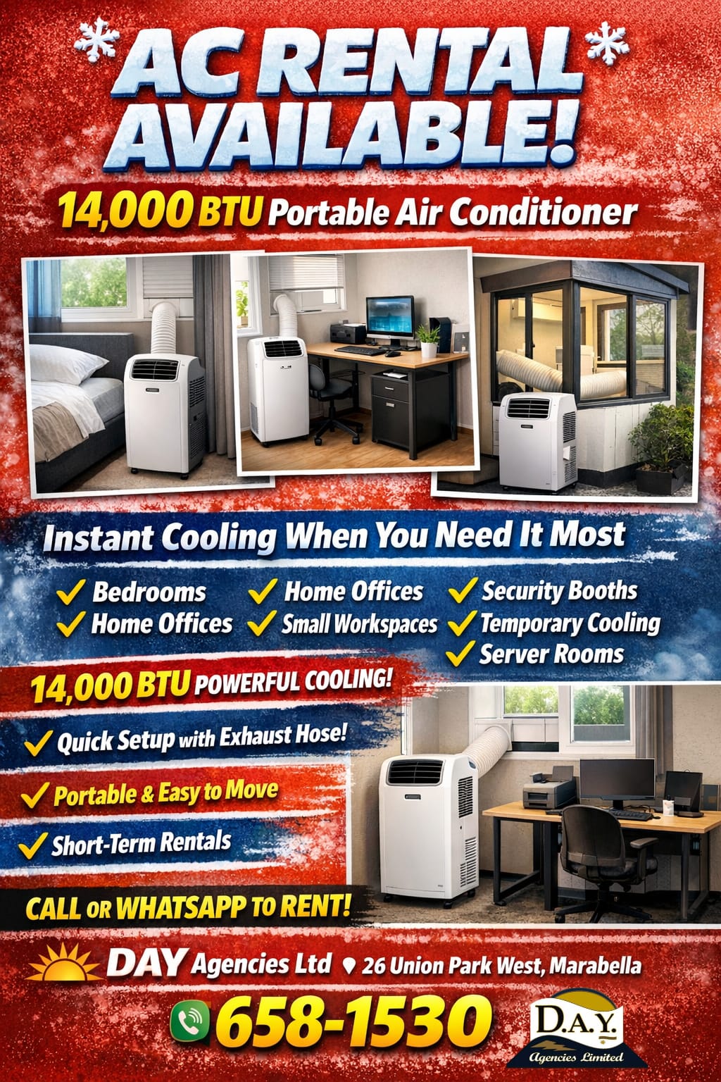 14,000 BTU Portable Air Conditioner. Instant cooling when you need it most.