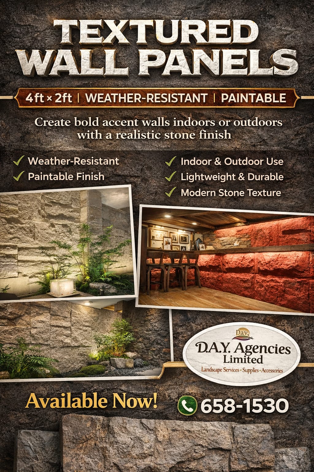 Create bold accent walls indoors or outdoors with a realistic stone finish